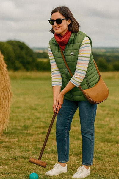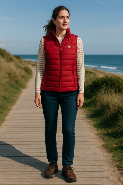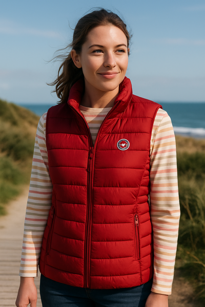 Ladies lightweight baffle gilet, rubber badge branding withfull zip pockets, machine washable
